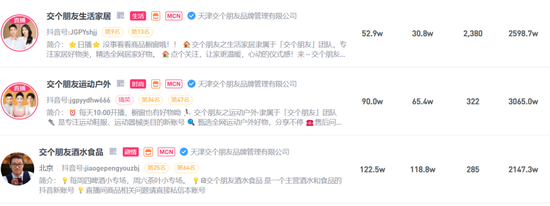 除了粉丝数量被东方甄选超越之外,在直播带货的销售额方面,交个朋友在老罗告别后,也已落后于东方甄选。 最近60天,交个朋友直播间,新增直播175场,累计直播销售额6.5亿元;东方甄选直播间,新增直播62场,直播销售额13.1亿元,在直播销售额方面,东方甄选已达到交个朋友的两倍。 两个月前,潘哥曾在《罗永浩前脚刚走,俞敏洪瞬间补位》一文中,判断罗永浩淡出交个朋友后,东方甄选也许会取代其“抖音带货一哥”的位置。现在看来,已成现实。 不过,作为曾经的“抖音带货一哥”,现阶段的交个朋友,虽然粉丝数和销售额,都落后于东方甄选,但其建立的直播间矩阵,实力却不容小觑。 交个朋友生活家居、交个朋友运动户外、交个朋友酒水食品三个直播间,粉丝数量分别为52.9万、90万、122.5万,最近30天直播销售额,分别为2598.7万元、3065万元、2147.3万元。