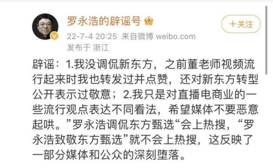 罗永浩退网两个月后,又一次回到了抖音交个朋友直播间。 在8月23日晚的一场直播中,罗永浩以答题节目主持人的身份,回到了交个朋友直播间,用一场答题式的综艺直播,将带货玩出了新花样儿。但是,短期数据并不乐观。 要知道,2个月时间,斗转星移。交个朋友直播间,在老罗退网的2个月内,面临下滑压力:过去60天,该直播间掉粉4.8万。业界惊呼,老罗再不回来,交个朋友直播间就快没朋友了。 一切转折点,似乎缘于6月9日,董宇辉的突然爆红。东方甄选的另类直播形式突然获得网友点赞和追捧。董宇辉与老罗一样,同属新东方老师出身,却更能煽动情绪,展示才华,让更多的网友为情怀买单…… 7月份,曾经给董宇辉点赞转发的罗永浩,一再声明,自己并没有嘲讽东方甄选。但是,为了业绩,老罗不得不行动起来,再次回归抖音。