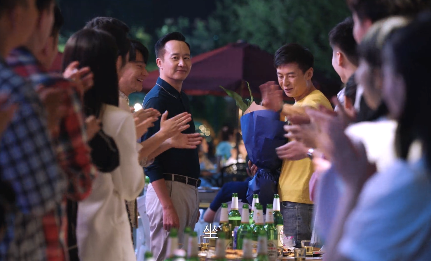 《欢迎光临》中,王牛郎(朱雨辰)请酒店朋友们庆祝入行十五年,张光正(黄轩)误把孙广庭(岳旸)拉入群聊,王牛郎假惺惺邀约,孙广庭慨然赴约。 作为领导,虽然在公司高高在上,但私底下,他也想跟员工们打成一片,大家成为朋友,但是位置不同,屁股的不同,决定了,大家会有一定的隔阂。