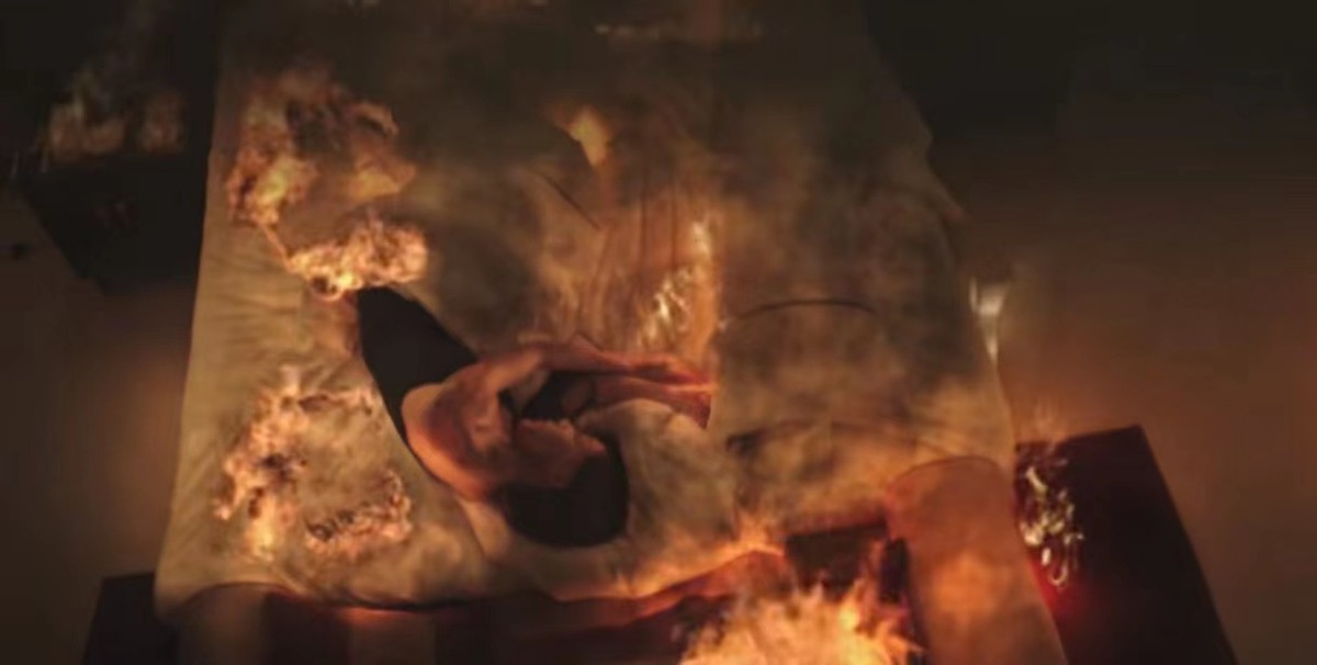 酒店经理林珍惠和高鸿志迅速冲回火场,砸开门链,却发现躺在床上已经被大火淹没的姜远星。 大火遮目,远景中,一个疑似放火的背影,好像就是本剧男主——程成。