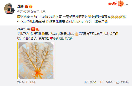 新浪娱乐讯 7月24日,马丽在微博晒出她妈妈做的“大麦”饺子,寓意《独行月球》票房大卖:“我儿子说:独行月球 |