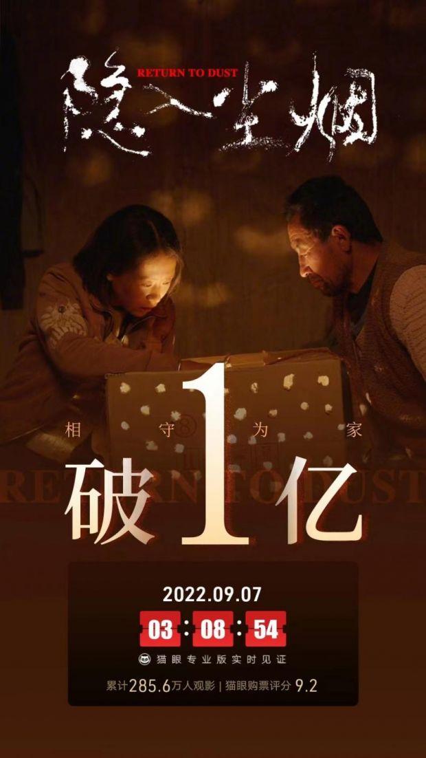 转自:青瞳视角 猫眼专业版数据见证,电影《隐入烟尘》上映62天 ,总票房破1亿。该片于7月8日公映,豆瓣评分从最初的7.8涨到了8.5,并入围了第72届柏林国际电影节主竞赛单元。8月29日,影片密钥再次延期,上映至9月30日。