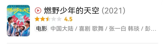 有了王家卫的加持,“实力不俗”的标签,欢喜传媒就算贴上了。 此外,除了院线电影的票房惨淡,欢喜传媒的流媒体作品也不尽如人意。 比如《燃野少年的天空》,乍一看名字还以为是《风犬少年的天空》的仿版,豆瓣评分只有4.5。