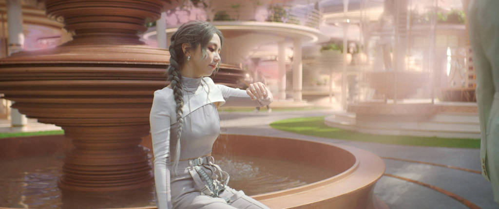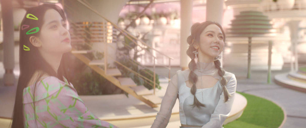 元宇宙轮廓初现 庞大世界观造就异次元时空 音乐专辑《启示录》此次发布的乐土预告之中,梦幻奇妙的元宇宙空间、清新浪漫的环境氛围、极具未来感的特效制作,惊艳呈现在观众眼前。 乐土预告中,Gloria穿行于酒吧中人声鼎沸的狂欢之夜,在梦幻光影之中与露露(欧阳娜娜饰)彼此凝望、牵手同行,“在这里你能随时见相见的人,去想去的地方,做想做的事情。“一幅宛若“理想国”、“乌托邦”般的元宇宙画卷就这样徐徐展开在观众眼前。结尾处Gloria留下的”意外惊喜“,也吊足观众胃口。虽然整个世界观构架还未完全呈现,但仅是目前曝光的乐土世界预告,就已让观众将期待值拉满,表示“我也好想穿越到这样的世界之中。” 同时释出的人物海报,也能些许窥见G.E.M.邓紫棋构架的庞大世界观与人物关系。G.E.M.邓紫棋以短发造型示人,与孙晨竣头戴同款VR眼镜,未来感十足。画面色调一红一蓝,互为映照,随着MV剧情逐渐揭开两人关系的神秘面纱。