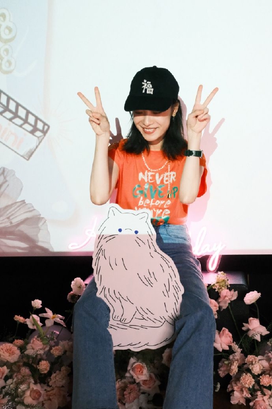 工作室分享倪妮庆生照 穿橙色上衣戴棒球帽活力满满