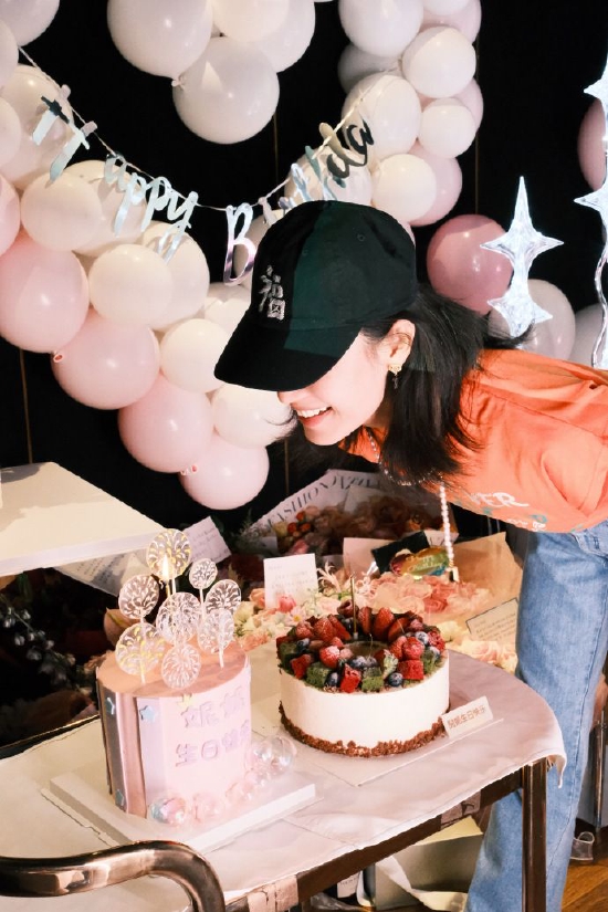 工作室分享倪妮庆生照,穿橙色上衣戴棒球帽活力满满。