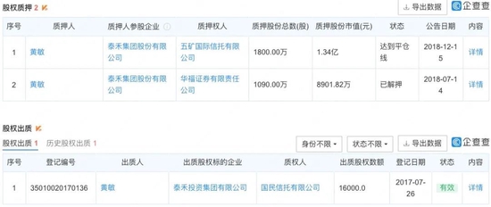 此外,有媒体报道叶荔周围亲属还帮黄其森代持股权。 据泰禾集团披露,早年黄其森的岳母张婀奵,曾为黄其森代持福建中维投资95%的股权,而张婀奵至少还能关联出三家公司,包括北京泰禾中维房地产开发、内蒙古泰禾中维房地产开发和北京企元投资; 不仅如此,黄其森的妻姐叶京及岳父叶作仁也关联泰禾多家公司。例如,叶京名下有上海懿禾资产管理;叶作仁名下有福建泰禾生化科技股份、福建泰禾农大生化、福建丰发房地产开发、福建泰禾生物工程研究。 在2010年借壳上市公告中,泰禾集团还认为森博达贸易、福建晖禾装修工程、福建中维投资均是黄其森控制的公司。 不仅叶荔,她的小姑子黄敏也因为泰禾暴雷被牵连其中。 3月,黄其森被带走协助调查,至今未归来。同时,公司董事会启动应急预案,由联席总裁葛勇、王景岗主持生产经营工作。但有消息称,当下泰禾的管理工作,是由黄其森的亲妹妹黄敏主持的。 截至目前,黄敏旗下共有三家子公司,分别是其持股5%的泰禾投资、持股50%的福建三钢房地产,以及持股1.45%的ST泰禾。 据乐居财经了解到,国民信托称将THAIHOT INVESTMENT(BERMUDA)COMPANY LIMITED、永兴达企业(香港)、泰禾投资、黄其森、黄敏一同告上法院。 双方的交集发生在2017年7月,彼时,泰禾还在高歌猛进之时,黄敏将持有泰禾投资价值1.6亿元股权数额出质予国民信托,目前该股权出质仍处于“有效”状态。