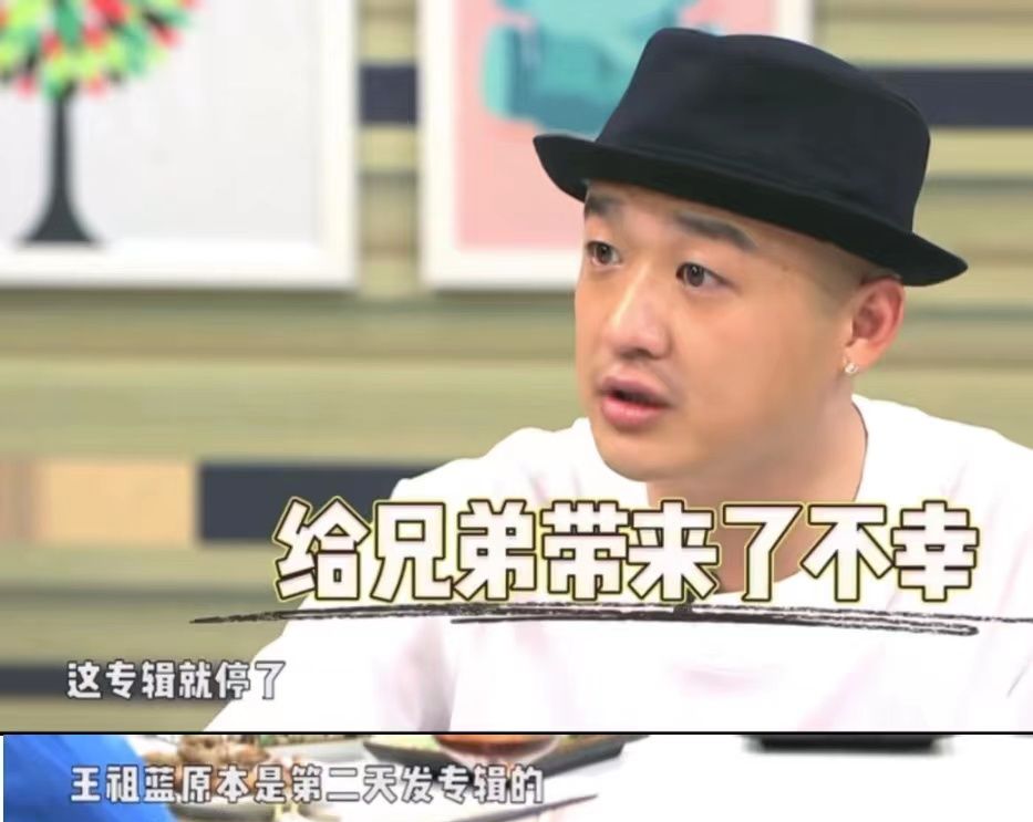 他说王祖蓝原本第二天要发献给妈妈的专辑,因为这事停了一年。