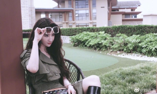 刘亦菲分享"录人"拍的四宫格美照 穿长靴戴墨镜酷飒十足