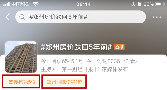 #唐山房价跌回两年前#、#郑州房价跌回5年前#、#70城房价变化:唐山等34城跌回2年前#等相关话题,于今天上午时分先后登上各大平台(新浪微博和百度)热搜!